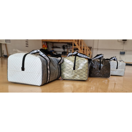 > Torba wykonana jest laminatowych tkanin żaglowych - różnych w zależności od wariantu.